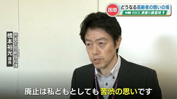 熊本市高齢福祉課 橋本裕光 課長(52)「廃止は私どもとしても苦渋の思いです。ただ今後の大きな地震が来た時に安全面が確保できない」