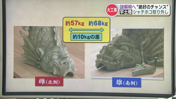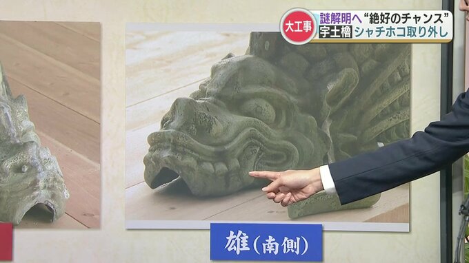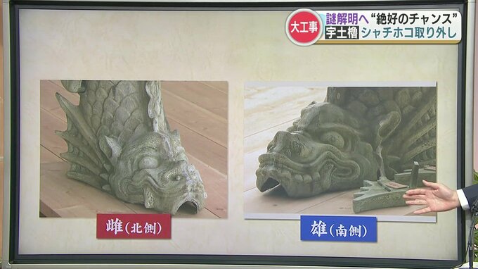 宇土櫓では、北側に雌の鯱、南側に雄の鯱というように、2体が「対」になっていました。