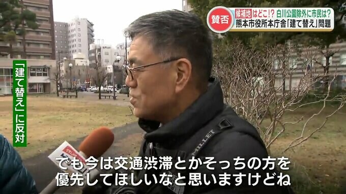 熊本市が新たな本庁舎の建設場所について、今の市役所周辺の4つのエリアを中心とする意向を示したことについて、市民や議員からはさまざまな意見が出ています。