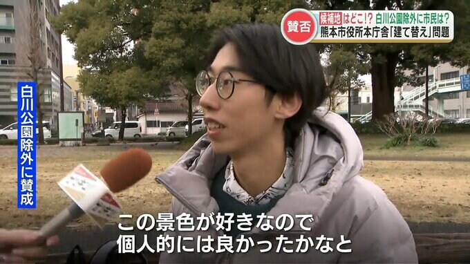 (白川公園除外に賛成)「街の中ってあんまり公園がないので、白川公園に建てなくても良いんじゃないかなって思いますね」