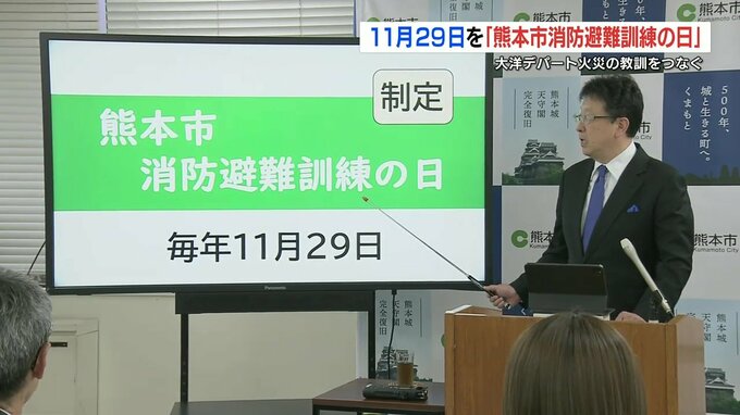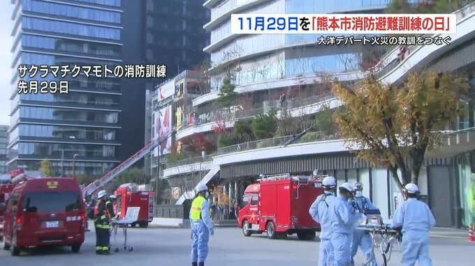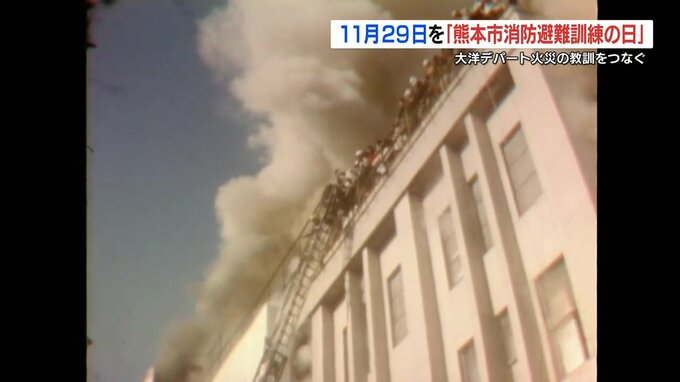 50年前に起きた大洋デパート火災の教訓を将来に活かすため、熊本市は、火災が起きた11月29日を「熊本市消防避難訓練の日」に制定しました。