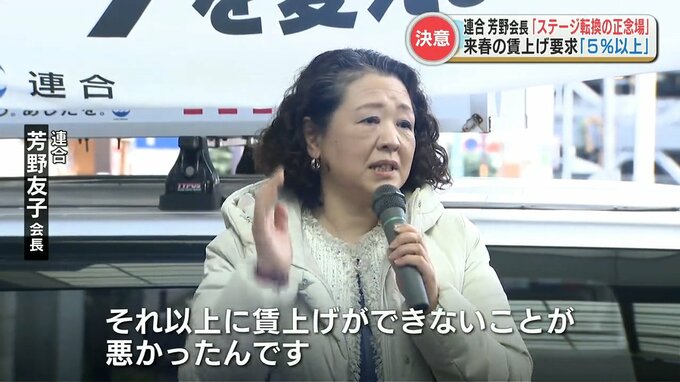 芳野会長は来年の春闘を「経済社会を変えていくステージ転換の正念場」と位置づけ、持続的な賃上げを訴えました。