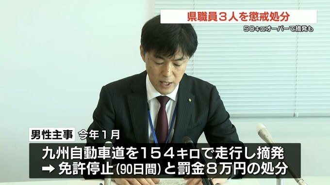 熊本県はスピード違反で摘発された20代の男性職員など3人の懲戒処分を発表しました。