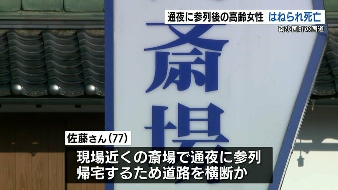 現場は横断歩道のない直線道路で、佐藤さんは現場近くの斎場で行われていた通夜に参列し、帰宅するため道路を渡っていたとみられています。
