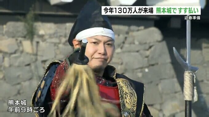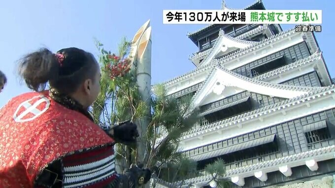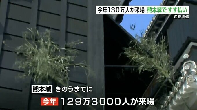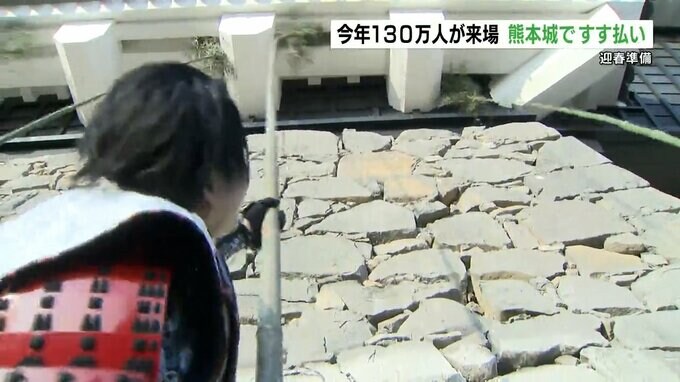 熊本城ではきょう(12月29日)恒例のすす払いが行われ、威勢のいいかけ声とともに「おもてなし武将隊」や職員が長さ7メートルのささ竹で1年間のほこりを落としました。