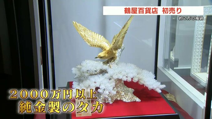 初売りの福袋は、食品や衣類の他、2000万円を超える純金製の鷹など、およそ2万袋が販売されています。