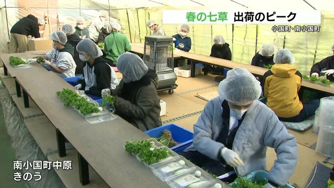 春の七草出荷ピーク 正月返上で作業 2024年1月3日(水) 11:48 国内 春の七草の出荷がピークをむかえています。熊本県南小国町の河津哲文さんの作業所では、スズナやセリなど、七草の出荷作業が正月返上で行われています。1月7日の「人日(じんじつ)」の節句に七草がゆを食べると、…
