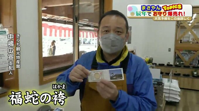 菊池観光物産館 中嶋広宣支配人「これですね、『福蛇の袴(ふくへびのはかま)』。龍王神社のお守りです」