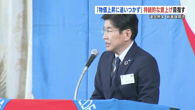 「持続的な賃上げを実現したい」と決意を新たに 連合熊本の新春旗開き 2024年1月11日(木) 12:01 国内 連合熊本の新春旗開き(はたびらき)があり、労働者の持続的な賃上げを目指す決意を新たにしました。旗開きには、労働組合員や関係者など約190人が参加しました。連合熊本の友田孝行会長は去年の春闘について「30…