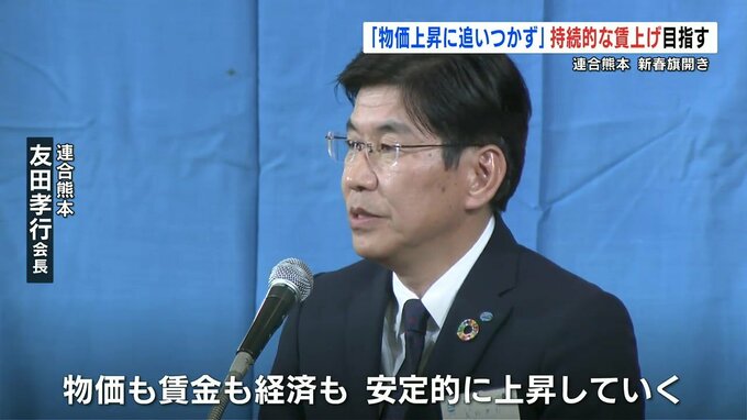 連合熊本の友田孝行会長は去年の春闘について「30年ぶりの高水準となる賃上げが実現したものの、賃上げが物価の上昇に追いついていない結果となった」と振り返り、今年は「持続的な賃上げを実現したい」と決意を語りました。