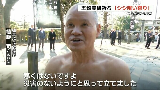 50年ぶりの福男 植野司さん(72)「寒くはないですよ。災害のないようにと思って立てました」