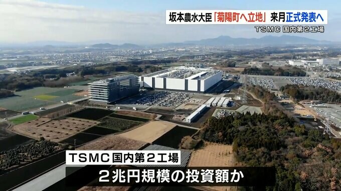 TSMCが熊本県内に建設を検討している第2工場について、第1工場と同じ、「菊陽町(きくようまち)への立地が来月、正式に発表される」ことが明らかになりました。