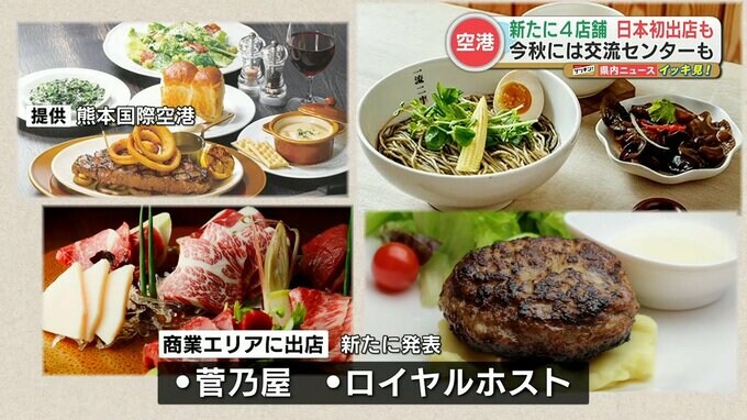 熊本空港の新旅客ターミナル隣の商業エリアに出店が決まったのは、飲食店4店舗です。