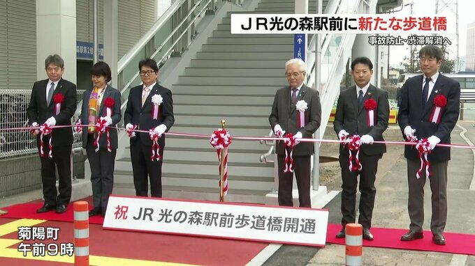 熊本県菊陽町は通学路の安全と渋滞の解消に向けて、JR光の森駅前に新たな歩道橋を設置しました。