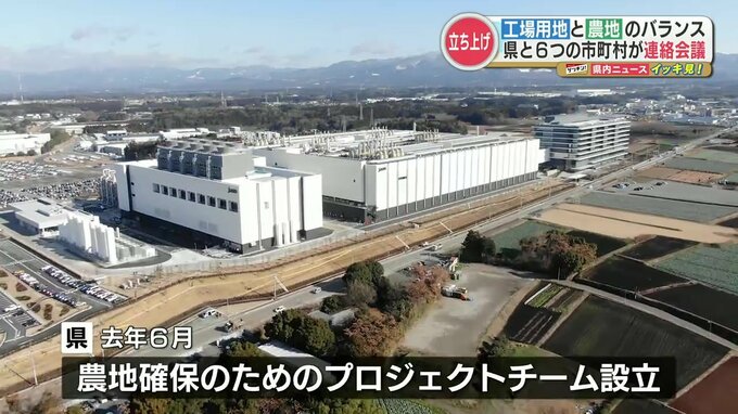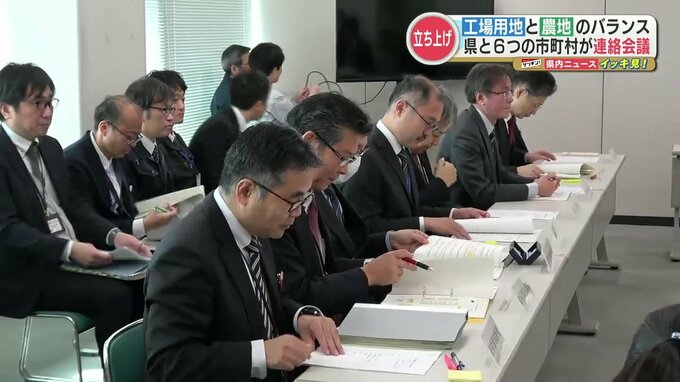 工場用地と農地のバランスを維持するため県と市町村が連絡会議を立ち上げました。