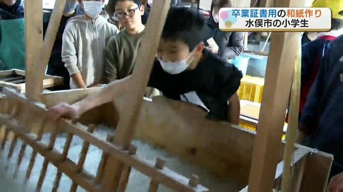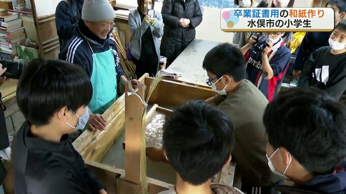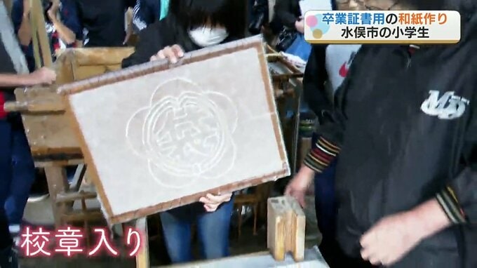 熊本県水俣市の小学生が、自分たちが手にする卒業証書用の和紙を作りました。