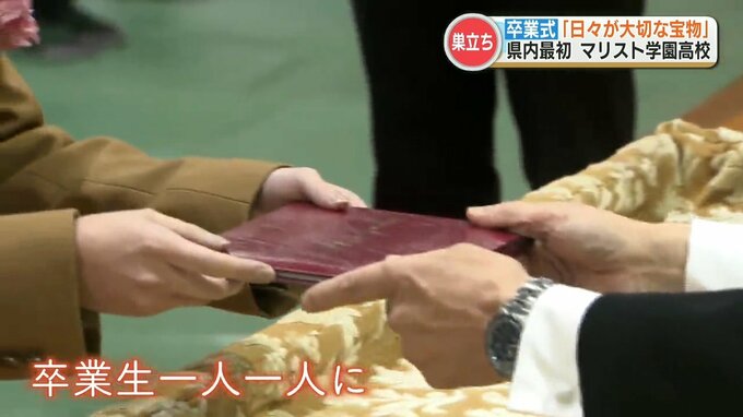 熊本市の熊本マリスト学園高校で早くも卒業式が行われました。191人が巣立ちです。
