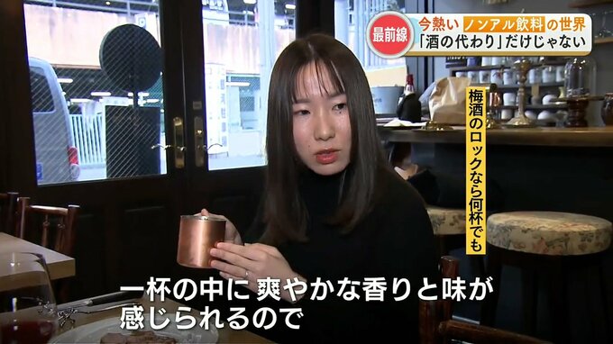 数回目の来店 女性「おいしい…これワインですよね、香りがめっちゃいい。お酒が入っていてもおかしくない、こういう楽しみ方もあると初めて知りました」