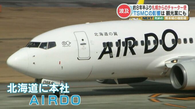 午後1時すぎ、熊本空港に降り立った機体には北海道に本社を置く『航空会社AIRDO(エア・ドゥ)』の文字が。