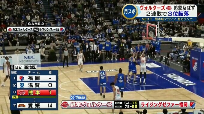 バスケットボールB2の熊本ヴォルターズは『ライジングゼファー福岡』との連戦。