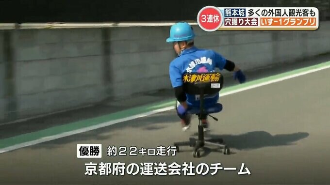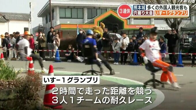 南関町で開かれたのは、「事務用のいす」を使ったレース、その名も「いすー1(ワン)グランプリ」。2時間で走った距離を競う3人1チームの耐久レースです。
