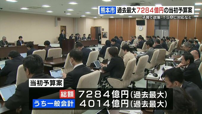 熊本市は、過去最大となる7284億円の来年度の当初予算案を発表しました(これまでの過去最大は2017年度の3948億円)。