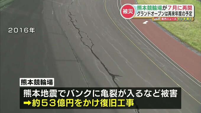 熊本市が運営する熊本競輪場は、2016年の熊本地震で、自転車の走路=バンクに亀裂が入るなど大きな被害を受け約53億円をかけ復旧工事が進んでいます。