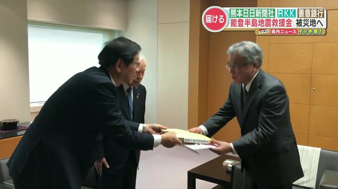 RKK熊本放送と熊本日日新聞社、熊本善意銀行が募った能登半島地震救援金の贈呈式が、石川県で行われました。