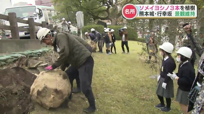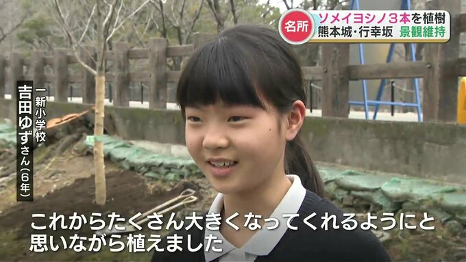 サクラの開花時期を前に花見の名所として知られる熊本城・行幸坂(みゆきざか)で一新小学校の6年生が植樹を行いました。