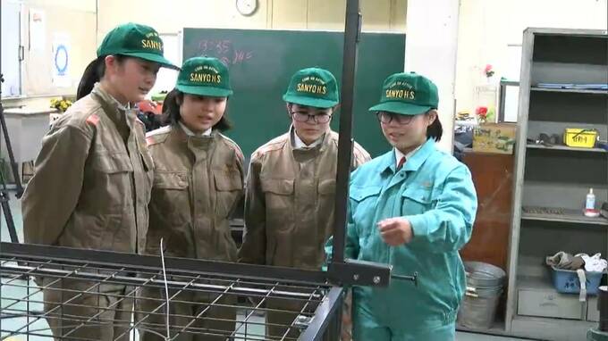 (おかやま山陽高校 機械科 妹尾栞さん)「重い時に1人で持ち上げるというのが難しいので、女子たちみんなで持ち上げるように協力してがんばりました」