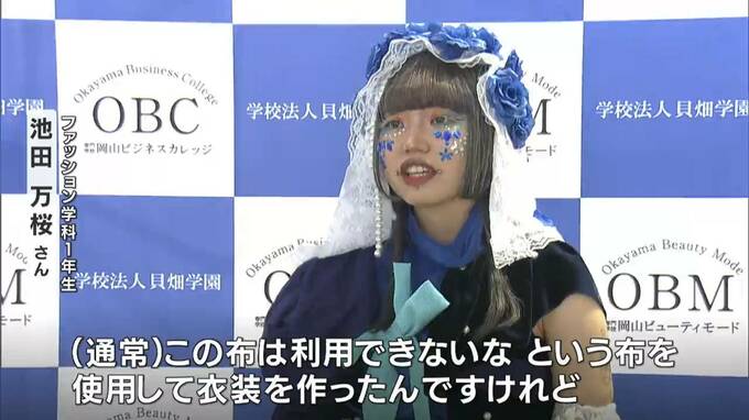 (ファッション学科1年 池田万桜さん)「この布は利用できないなっていう布を使用して衣装を作ったんですけど、その人がどうやったら一番似合う形になるかを考えながら作っていきました」