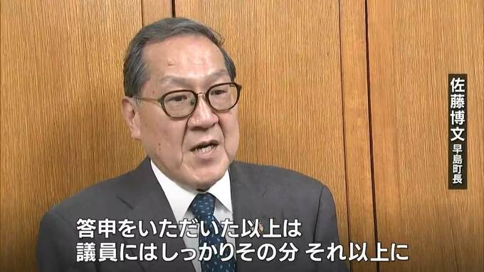 (佐藤博文 早島町長)「答申をいただいた以上は議員の皆さんにはですね、しっかりその分、いやそれ以上に町民の皆さんのためにですね、がんばっていただきたいなと」