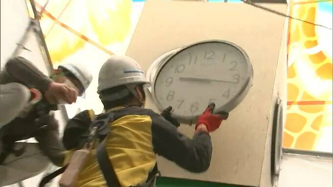 午前9時過ぎ、長年、時を刻んできた時計(【画像①】)が外されます。