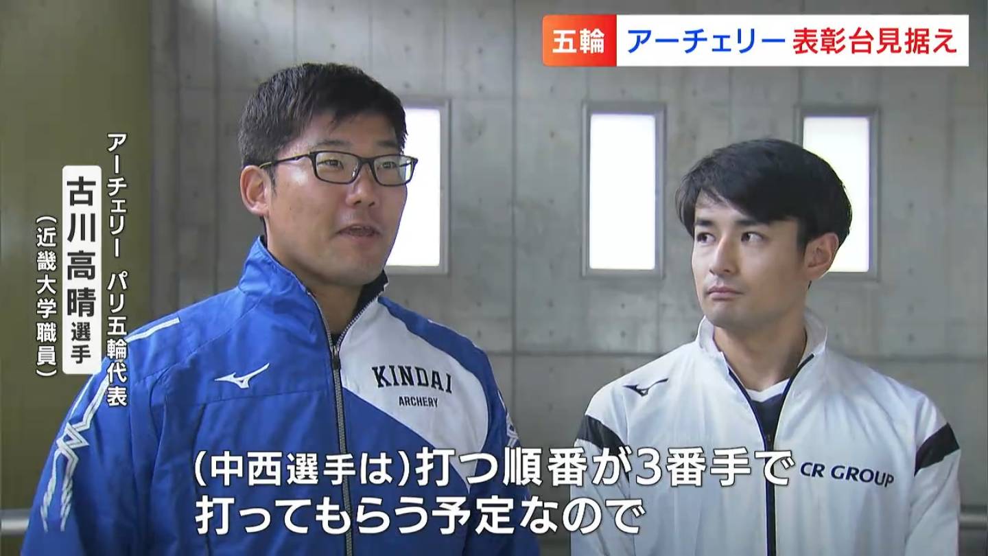 (アーチェリーパリ五輪代表 古川高晴選手⦅近畿大学職員》)「(中西選手は)打つ順番が3番手で打ってもらう予定なので、その3番手で10点に決めれば、メダルがとれる。そういう場面でしっかり決めることを期待して、それが十分にできる選手だと思っています。今年夏までに3人の調子をしっかり上げて、もっとチームの力を強くして、この3人でパリでメダルをとれるように頑張りたいと思います」