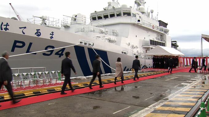 「はてるま」は全長96メートル、総トン数1500トンの大型巡視船です。領海警備のほか海難救助や海上犯罪の取り締まりなどの任務に就く予定だということです。引渡式では、マストに海上保安庁の旗が掲げられました。