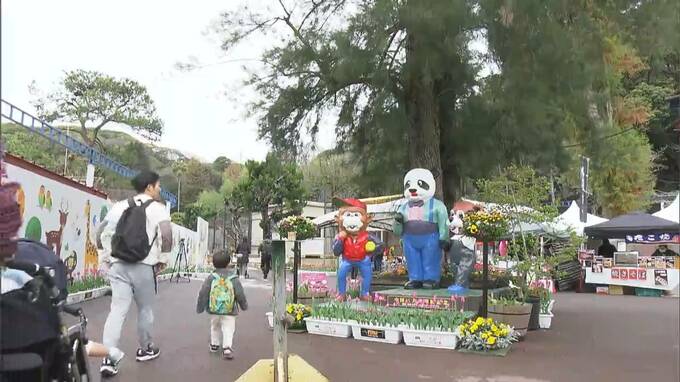 動物と色とりどりの春の花の共演を楽しんでもらいたいと、期間中はおよそ3万本の花が園内に飾られます。