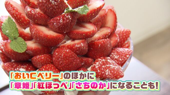 その日の朝に採ったイチゴを使っているため、「おいCベリー」の他に「章姫」「紅ほっぺ」「さちのか」になることも!どれを食べられるかは、行ってからのお楽しみです。