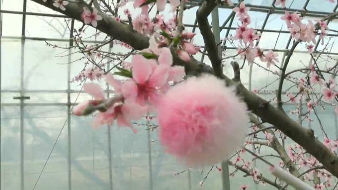4月に咲く桃の花が温室の中ではすでに満開です。