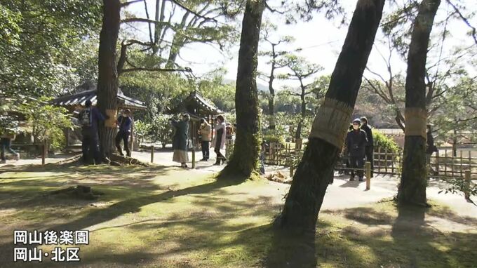 岡山後楽園で春の訪れを告げる「松のこも焼き」がきょう(28日)行われ、多くの観光客が楽しんでいました。