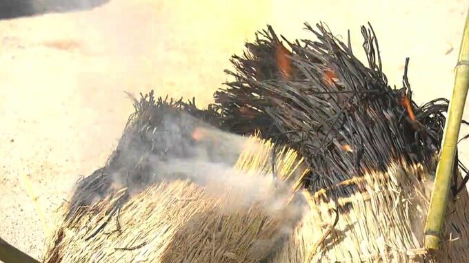 岡山後楽園で48年前から続く伝統行事「松の菰(こも)焼き」です。