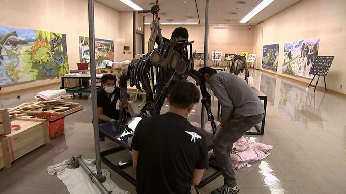 会場では、このほか恐竜のイラストや図鑑の原画、動植物の化石などが展示されています。恐竜美術展はあす(7月23日)から8月28日まで、倉敷市立美術館で開かれます。