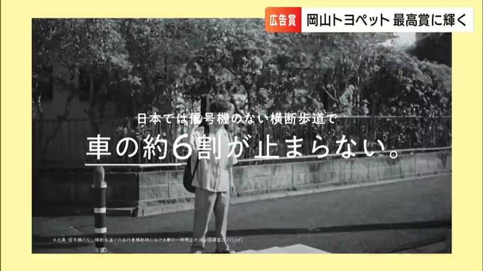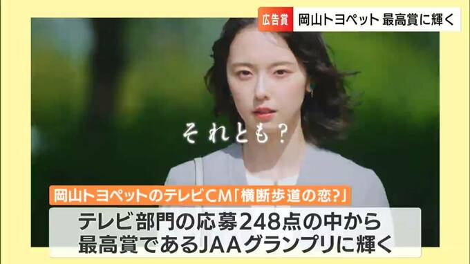 新聞や雑誌など合わせて6部門あり、テレビ部門では248点の応募の中から岡山トヨペットのテレビCM「横断歩道の恋?」が、最高賞のJAAグランプリに選ばれました。