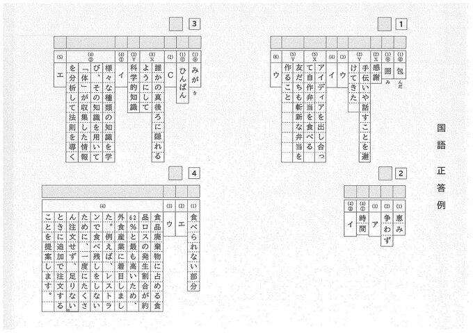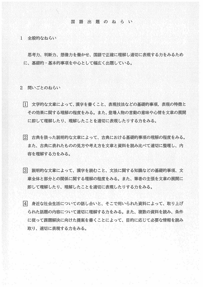 国語の「正答例」と「出題のねらい」は、【画像①②】の通りです。(「問題」は著作権の関係上、掲載しておりません)。