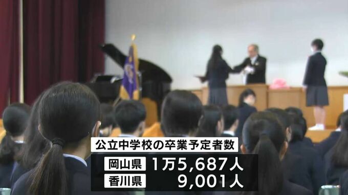 この春、岡山県では約1万5千人が、香川県では約9千人が公立中学校を卒業する予定です。