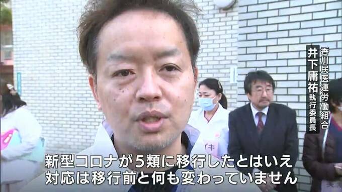 新型コロナウイルスの5類移行後も、人員の減少などで多忙を極める医療従事者の待遇改善を求めて、香川民医連労働組合がストライキを行いました。