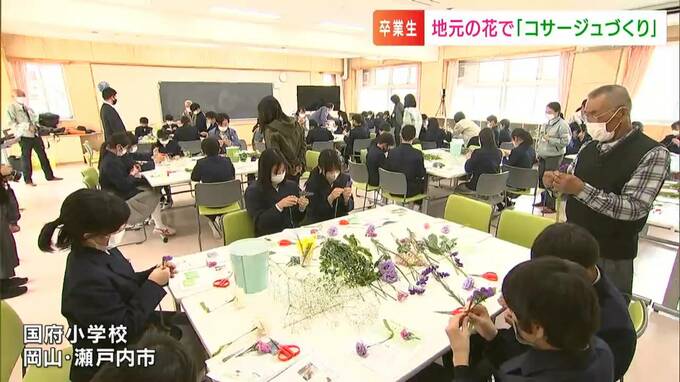 卒業シーズン、卒業生が自分たちの手で作りました。岡山県瀬戸内市の小学校で、6年生が「地元産の花」を使って、式典で身に着けるコサージュをつくりました。