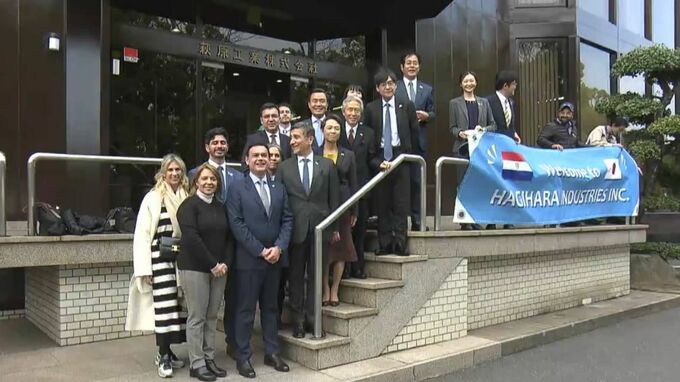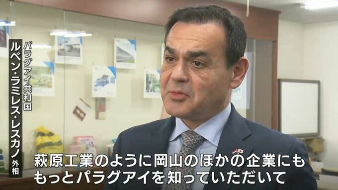 南米のパラグアイ共和国の外務大臣らが、きのう(14日)倉敷市の萩原工業を訪問し、工場を視察しました。