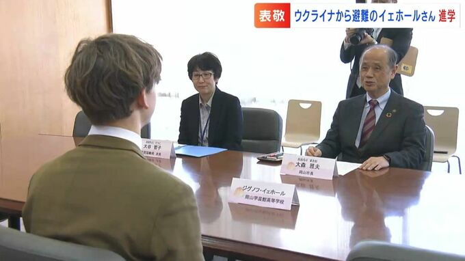 ウクライナから岡山県内に避難している高校生のジグノフ・イェホールさんが高校生活を終えたことと進学の報告できょう(15日)岡山市役所を表敬訪問しました。