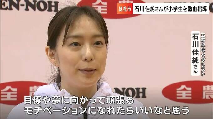 五輪の卓球で3大会連続のメダルに輝いた石川佳純さんが、岡山県総社市で小学生に熱血指導を行いました。