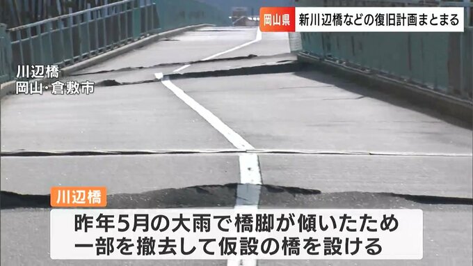 昨年5月、大雨で橋脚の一部が傾いた、倉敷市と総社市を結ぶ「川辺橋」についてです。岡山県は新川辺橋の南側に歩道を設置し、川辺橋は最終的に撤去する方針を明らかにしました。
